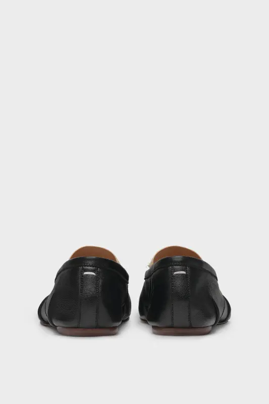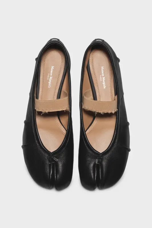 In leather with handmade folds, the ballerinas feature a distressed elastic band and the Tabi split-toe, inspired by the traditional 15th century Japanese sock bearing the same name – launched for the Maison's debut collection in 1989. It captures the avant-garde and insubordinate spirit of the Maison and exists as a heritage classic, continually explored through each collection.