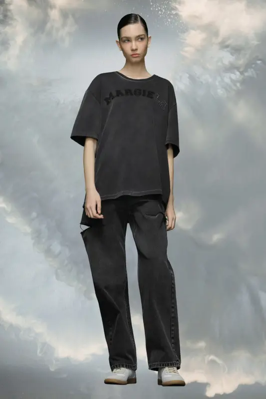 The heavy jersey T-shirt features the Memory of Margiela logo with appliquéd LA lettering across the chest. It comes in a relaxed fit. Maison Margiela's signature, the four stitches, appear at the back; the opposite of a label.