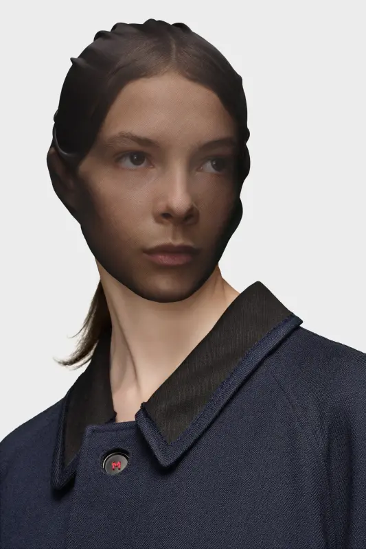 Crafted from wool viscose, the coat features a contrast collar and a button at the top with a hidden placket for a clean aspect. A single vent finishes the design. Maison Margiela's signature, the four stitches, appear at the back; the opposite of a label.