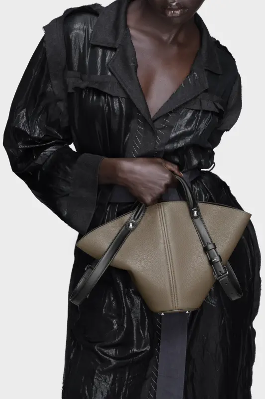 Maison Margiela Brown Calf Leather Dress-Age Bag Small Graphite and black