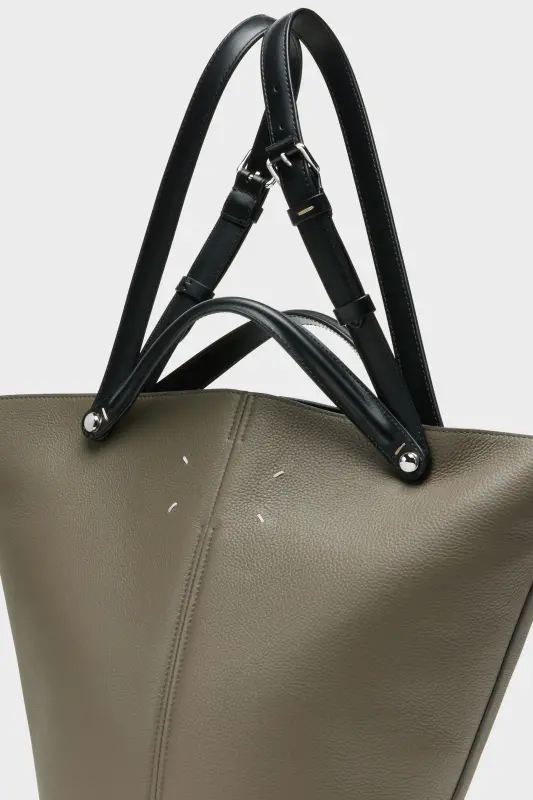 The Maison launches the Dress-age handbag for SS25, crafted from soft pebbled calfskin. With an equestrian spin, the medium handbag features classic leatherwork and refined lines, combining unconscious glamour with gestural design. It follows a trapezoid shape with contrast dual-wear strap detail. The studded base allows the bag to stand, and the inner is adorned with the logo. Maison Margiela's signature, the four stitches, appear at the back; the opposite of a label.