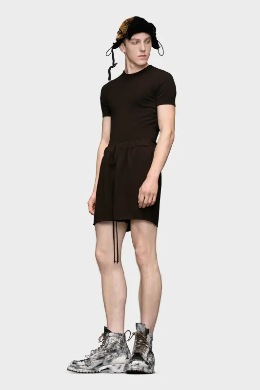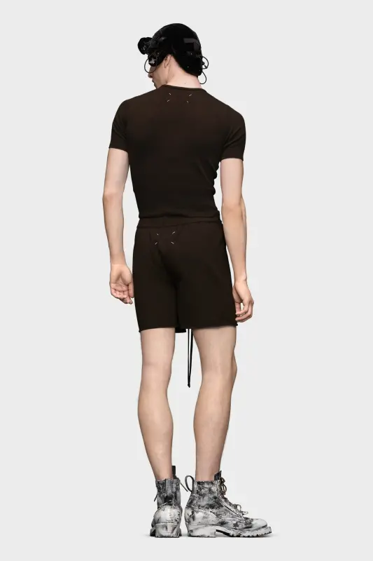 Crafted from a soft cashmere wool blend, the shorts create a loose silhouette with a lightly rolled hem for a relaxed take. They feature a loungewear-inspired drawstring waistband with extra-long tie and a ribbed finish, as well as side pockets. Maison Margiela's signature, the four stitches, appear at the back; the opposite of a label.