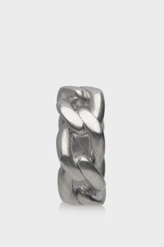 An interlocked chain ring, crafted from semi-polished silver.