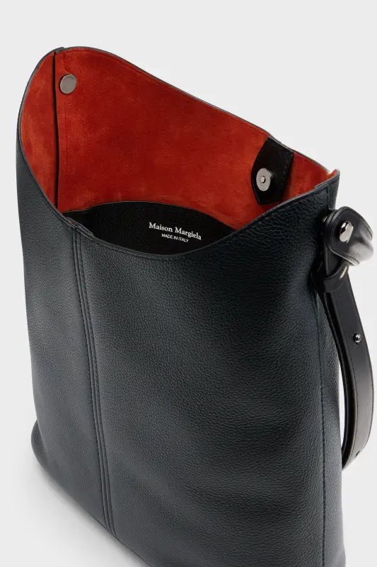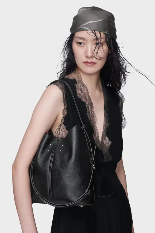 The Maison launches the Dress-age hobo for SS25, crafted from soft pebbled calfskin. With an equestrian spin, the small handbag features classic leatherwork and refined lines, combining unconscious glamour with gestural design. It follows a conical shape with contrast dual-wear strap detail. The studded base allows the bag to stand, and the inner is adorned with the logo. Maison Margiela's signature, the four stitches, appear at the back; the opposite of a label.