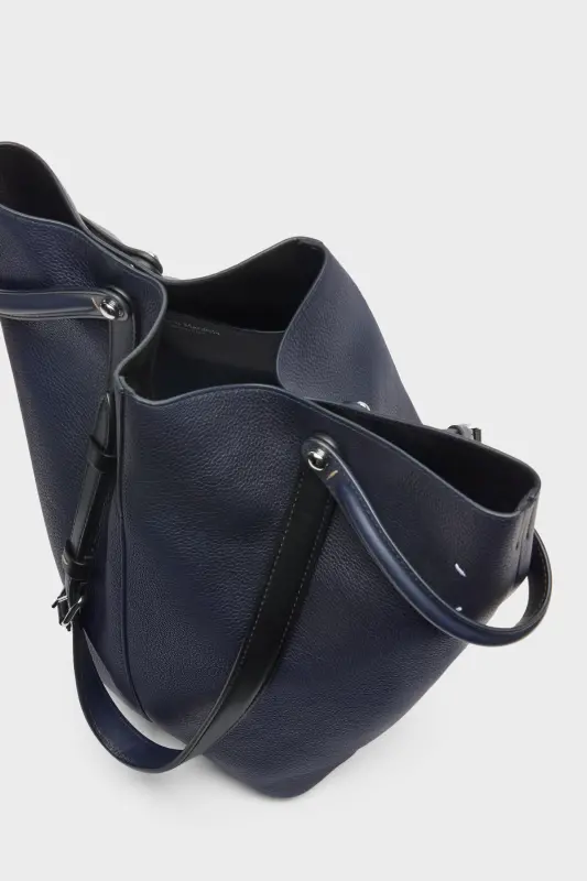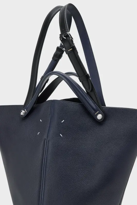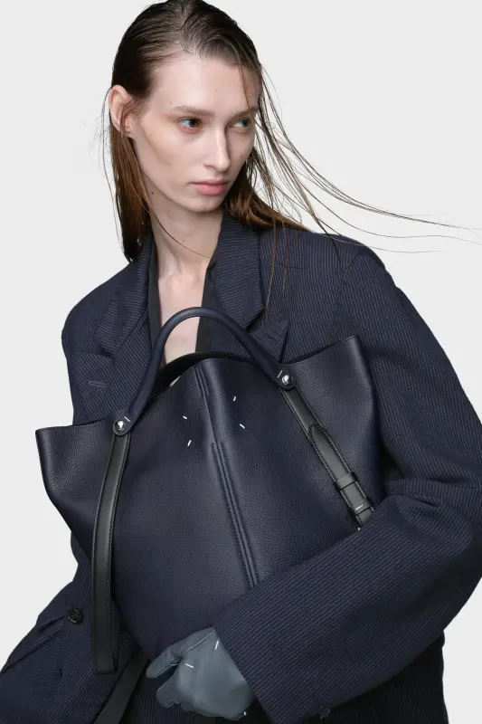 The Maison launches the Dress-age handbag for SS25, crafted from soft pebbled calfskin. With an equestrian spin, the medium handbag features classic leatherwork and refined lines, combining unconscious glamour with gestural design. It follows a trapezoid shape with contrast dual-wear strap detail. The studded base allows the bag to stand, and the inner is adorned with the logo. Maison Margiela's signature, the four stitches, appear at the back; the opposite of a label.
