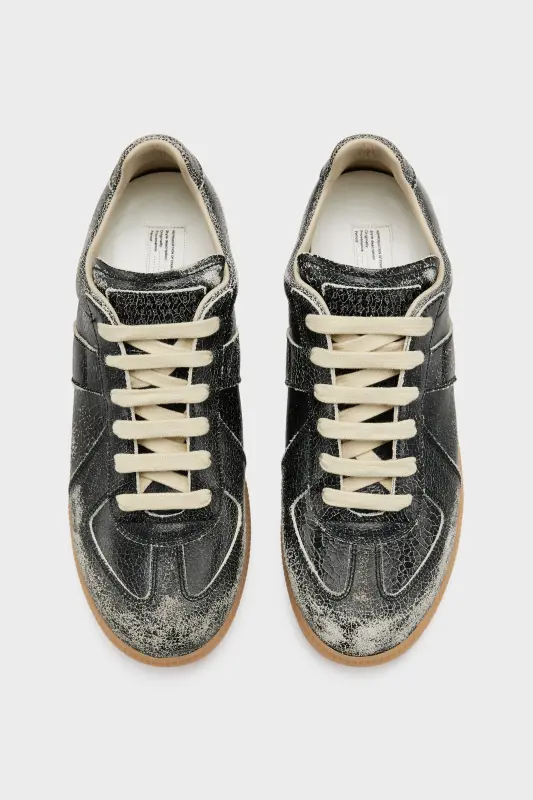 Home / Shop / Maison Margiela Mens Black Leather Replica Sneakers Black and White