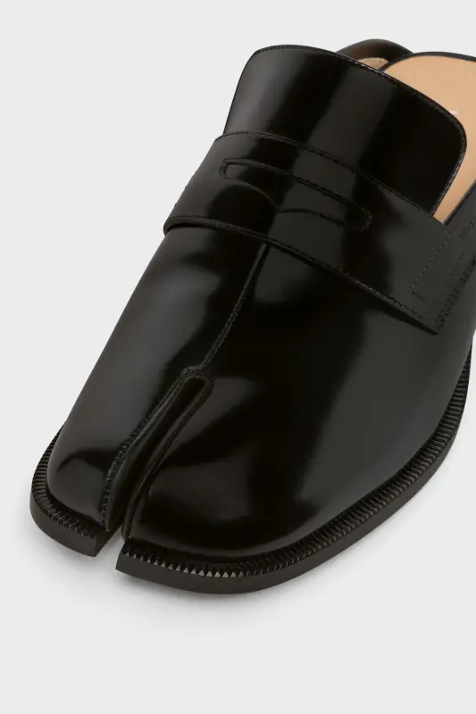 Maison Margiela Mens Black Leather Tabi City Loafer Mules Black