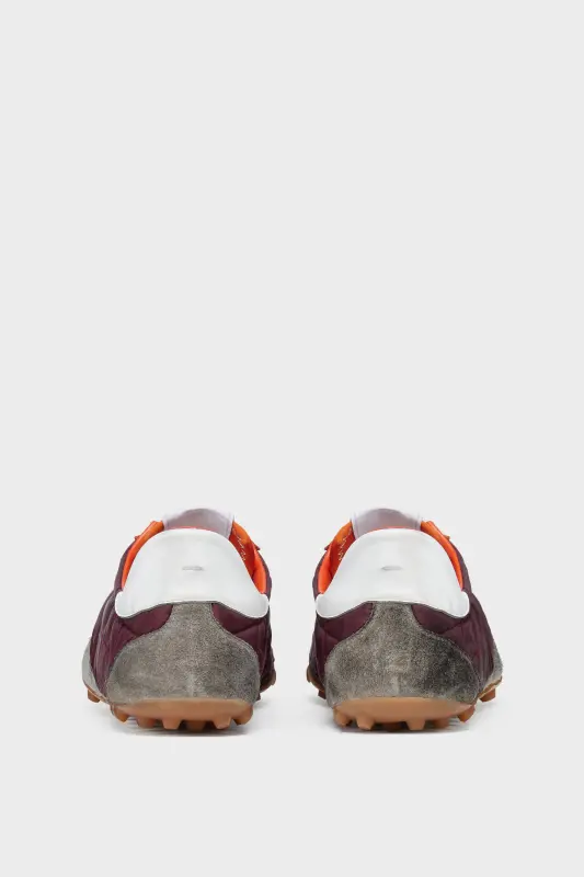 Inspired by 1960s spike shoes, the Sprinters redefine retro athleticism through exaggerated textural contrasts. The uppers, crafted from quilted fabric and hairy suede, are accentuated by a bold contrast heel and precisely stitched panels. A subtle numeric logo appears on the tongue, while the outsole bears the Maison’s footwear code, 22.