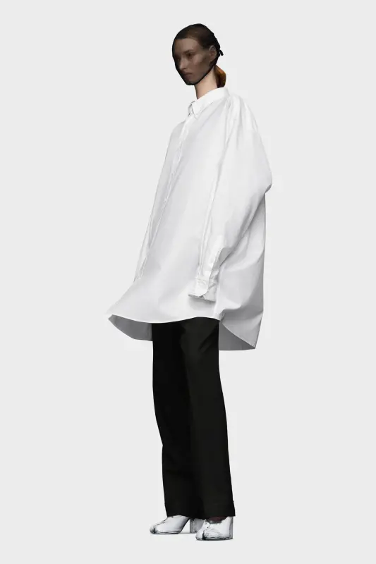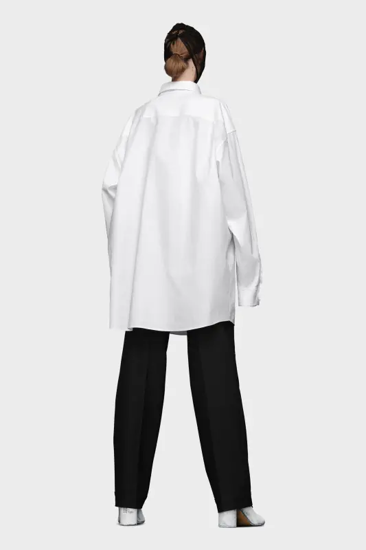 This long-line Oxford shirt in organic cotton has a buttoned collar and classic buttoned placket. The cuffs are also buttoned.