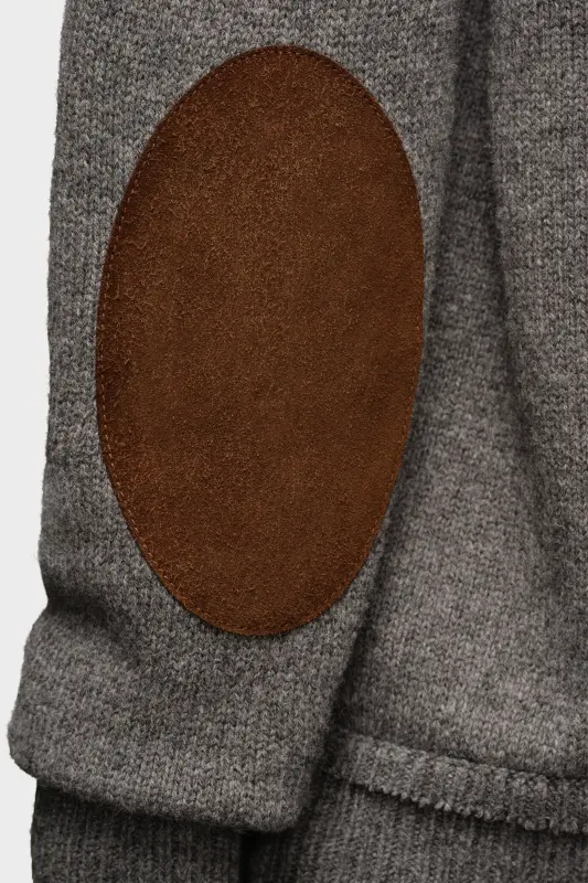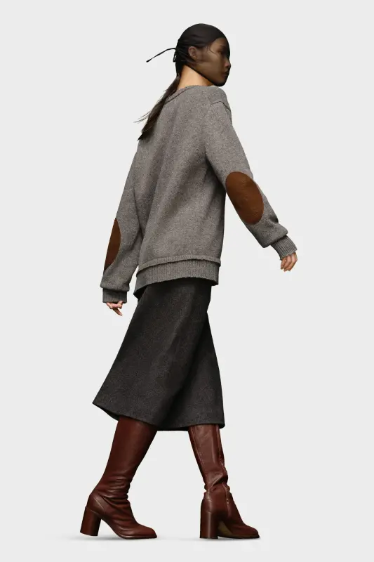 This V-neck knit sweater with long sleeves and ribbed trims features tonal elbow patches. At the back, four white stitches show the hand of the Maison: the opposite of a label. Gauge 5.