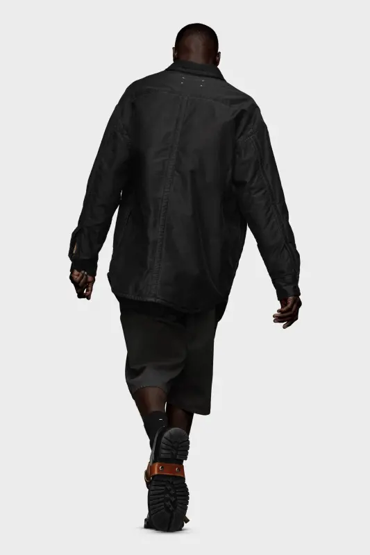 Created in satin cotton, the shirt is oversized and padded. It comes complete with buttoned placket, collar and chest patch pocket. Maison Margiela's signature, the Four stitches, appear at the back; the opposite of a label.