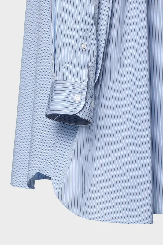 A classic shirt in pinstriped cotton poplin, with a collar, buttoned placket and chest pocket. At the back, four white stitches show the hand of the Maison: the opposite of a label.