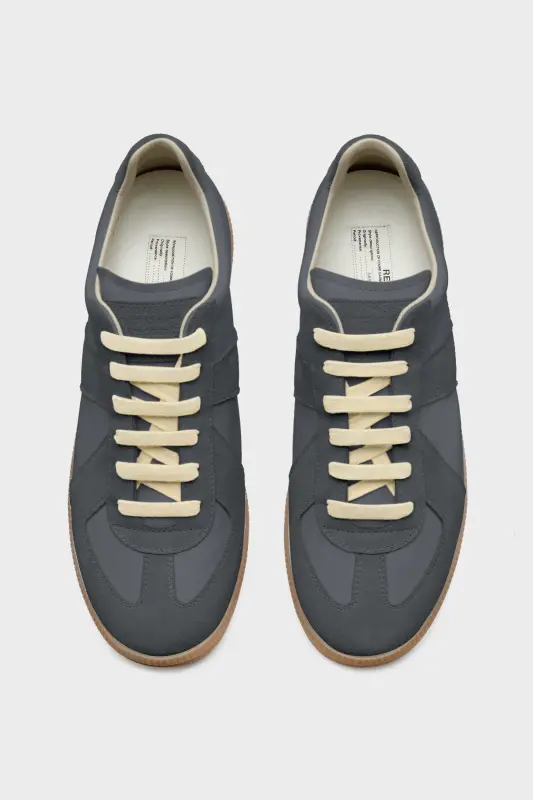 The Replica sneakers in nappa leather and suede with a honey sole. The Maison's iconic Replica sneakers are inspired by Austrian sports shoes from the seventies. Details on the Replica pairs are continually reworked in line with the season's inspirations.