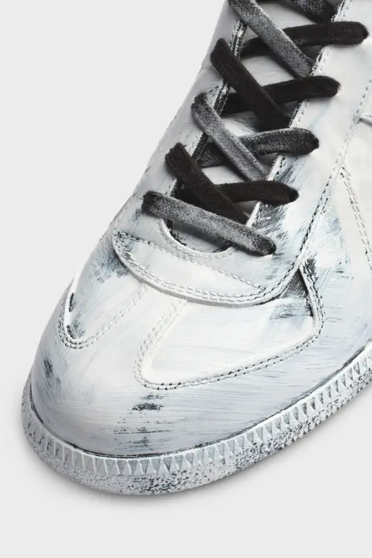 Replica sneakers in calfskin with the numerical logo on the tongue and iconic stitch mark at the back. They feature a glossy finish on the Maison's bianchetto treatment, created by hand. The Maison's iconic Replica sneakers are inspired by Austrian sports shoes from the seventies. Details on the Replica styles are continually reworked in line with the season's inspirations.