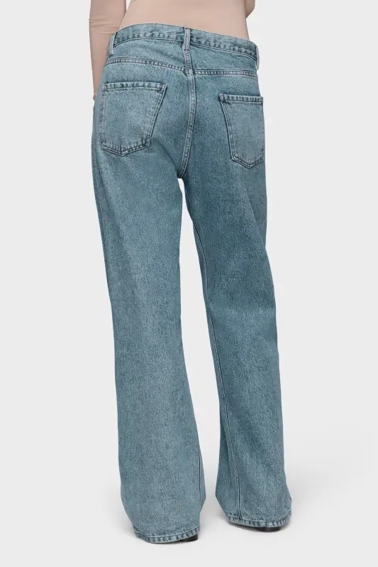 The classic denim jean has been reworked in the autumn-winter collection to reveal a contrast white insert on the front pockets, which are deliberately gaping for high impact. This stonewashed, cotton pair offers a relaxed fit with full-length, wide straight legs. Five pockets and belt loops are met with a contrasting camel-coloured topstitch, which also runs down the seams.
