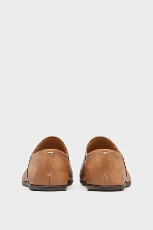 Crafted from vegetable tanned calf leather with sun fadded effect, the babouche shoes feature the Tabi split-toe, inspired by the traditional 15th century Japanese sock bearing the same name – launched for the Maison's debut collection in 1989. It captures the avant-garde and insubordinate spirit of the Maison and exists as a heritage classic, continually explored through each collection. Maison Margiela's signature white stitch appears at the back.