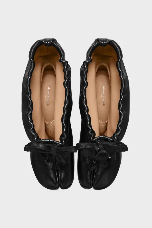 Maison Margiela Womens Black Leather Tabi Drawstring Ankle Boots Black
