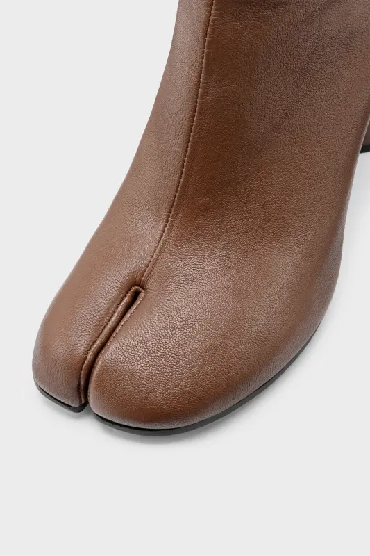 Maison Margiela Womens Brown Leather Mid-Heeled Tabi Chelsea Boots Brown
