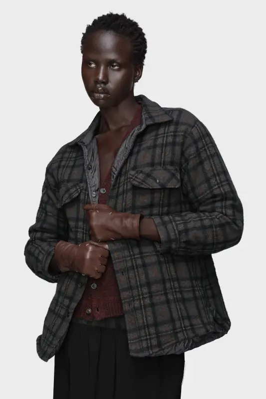Home / Shop / Ready-to-wear / Maison Margiela Womens Gray Wool Quilted Shirt-Jacket Anthracite and brown check