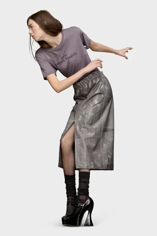 The cotton jersey T-shirt features the new reverse logo, with reverse applicated stitch to give the impression it has been sewn and then unstitched. Maison Margiela’s signature, the Four stitches, appear at the back; the opposite of a label.